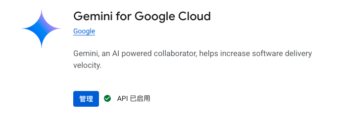 开启 Gemini for Google Cloud API 服务, 访问地址: 见错误提示, 类似于