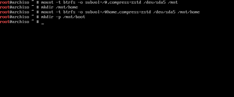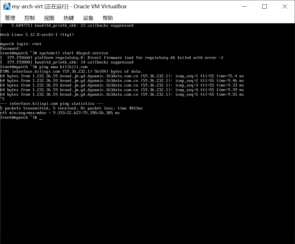 进入安装环境后,便可以开始通过命令安装 archlinux 了