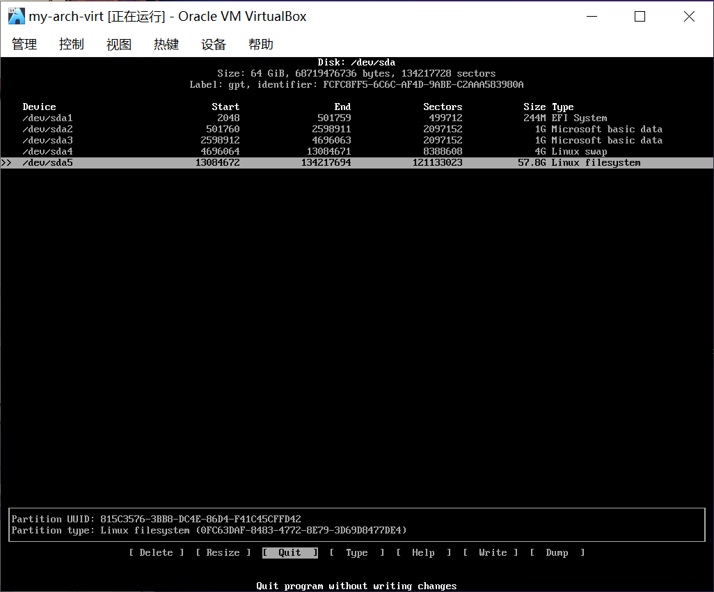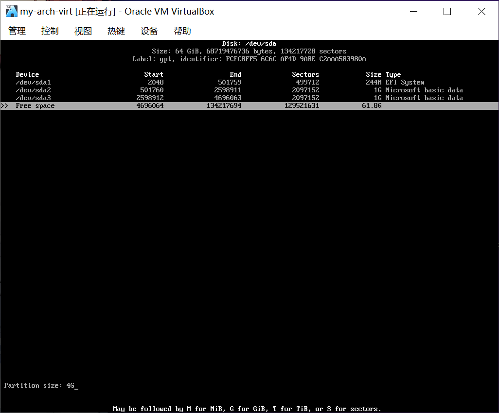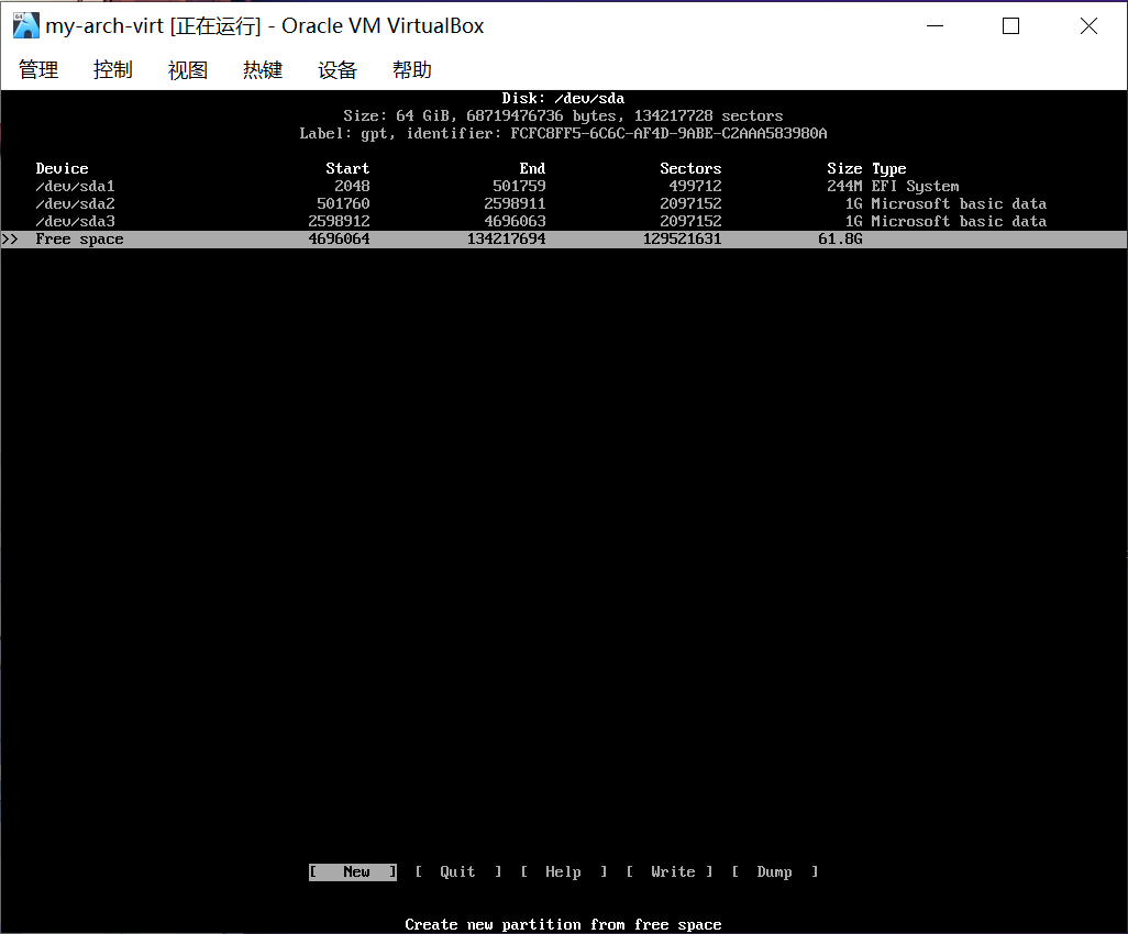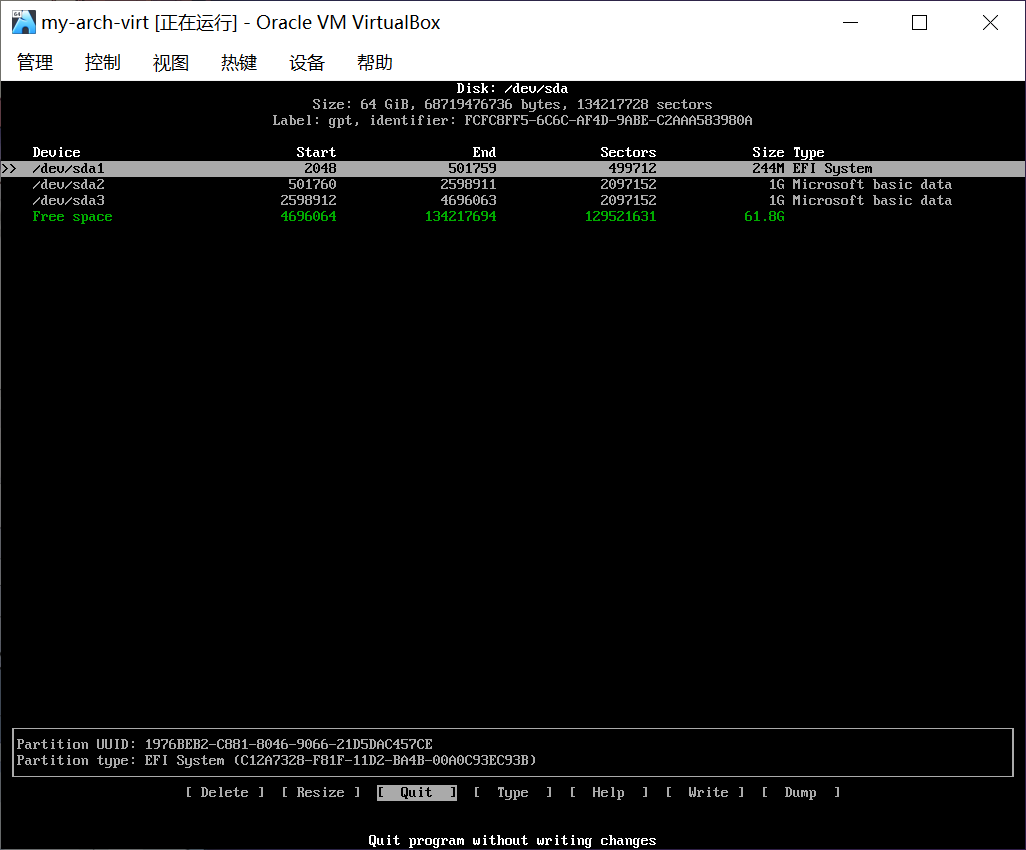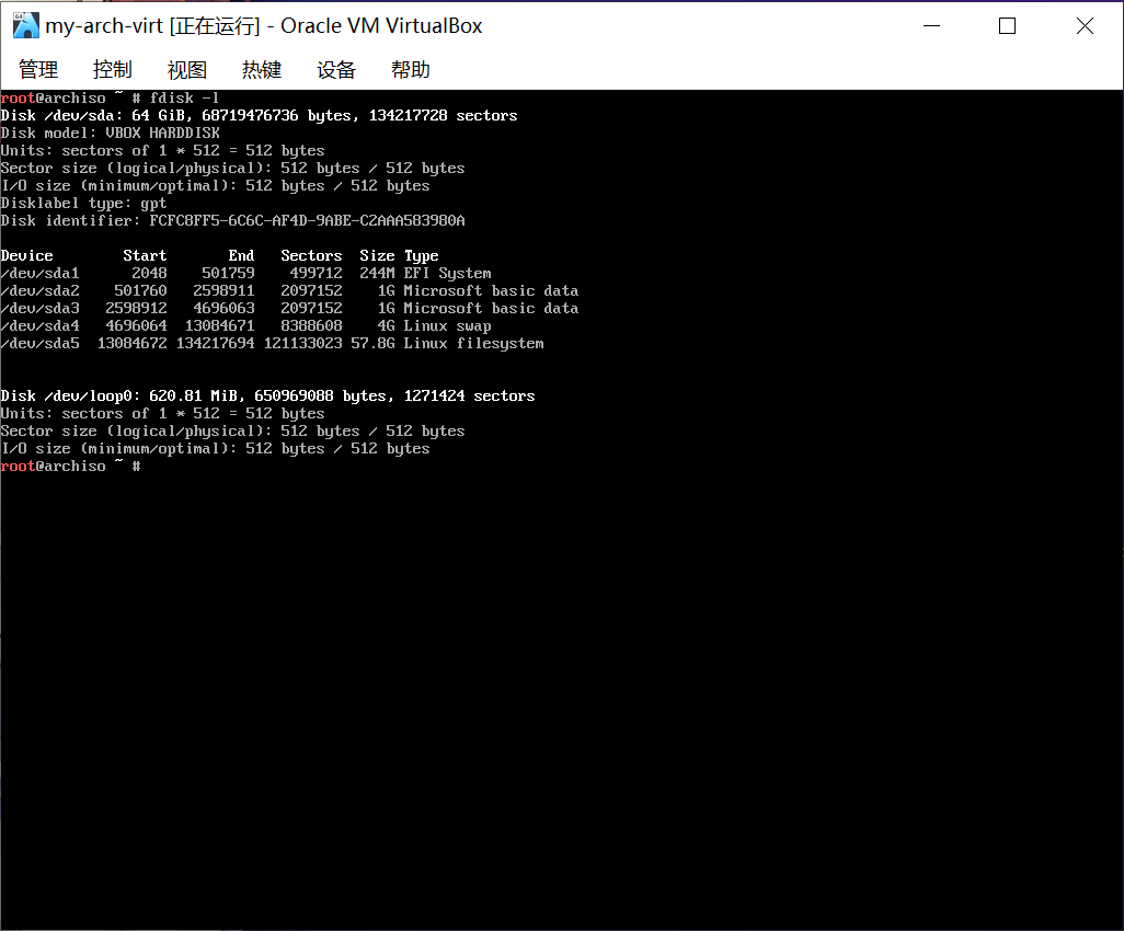 本节中的截图来自虚拟机和已经安装好的 archlinux。不用担心!和你在实体机看到的是一样的。