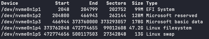 /根目录:>= 128GB(和用户主目录在同一个Btrfs文件系统上)/home用户主目录:>= 128GB(和根目录在同一个Btrfs文件系统上)/bootEFI 分区:256MB(由电脑厂商或 Windows 决定,无需再次创建)- Swap 分区: