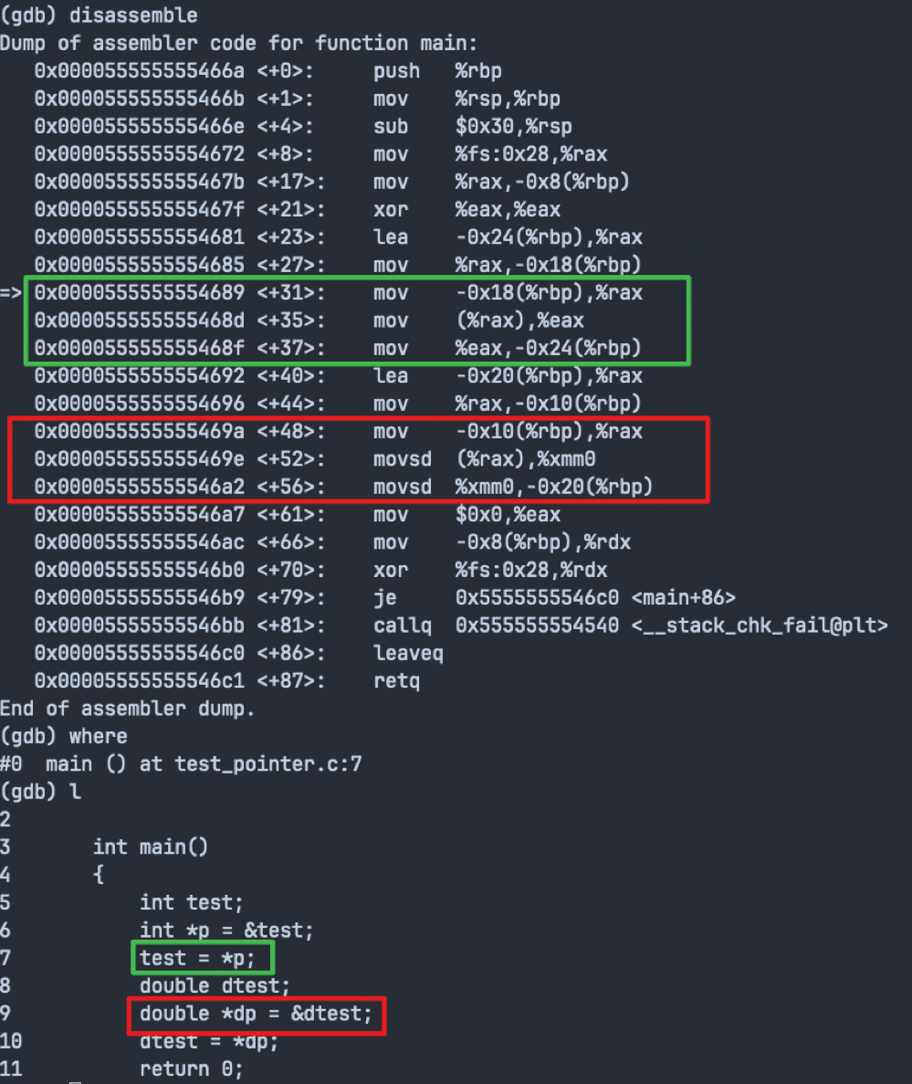 int *ptr = &test;中, ptr在数值上既存储了偏移量, 也存储了线性地址